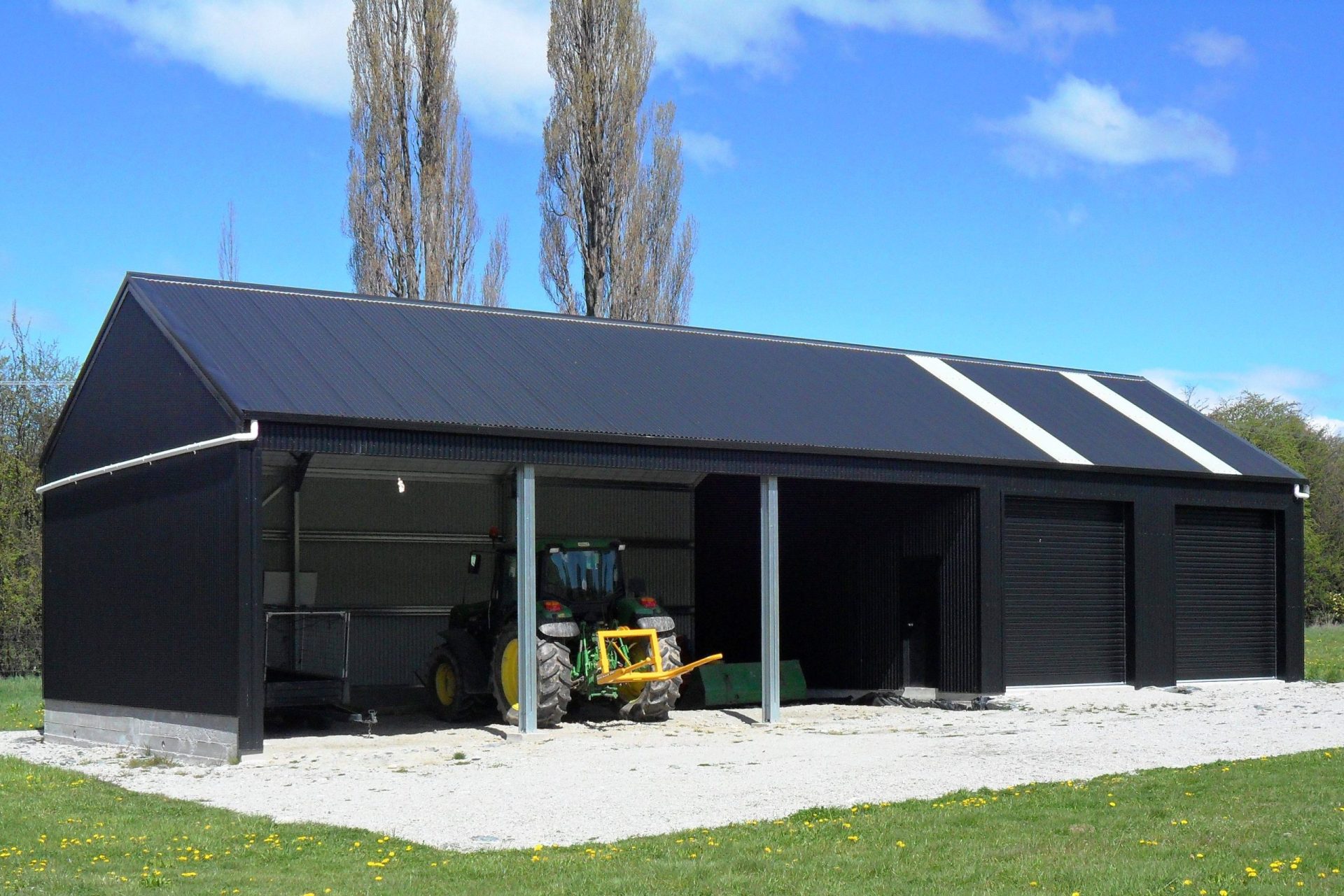 Specialised Structures can design and build sheds in almost any size, shape, or design and can customise the size of the bay, door width, and building height. Our implement sheds can have a clear span of over 25 metres, which allows for the storage of large vehicles, machinery, and boats.